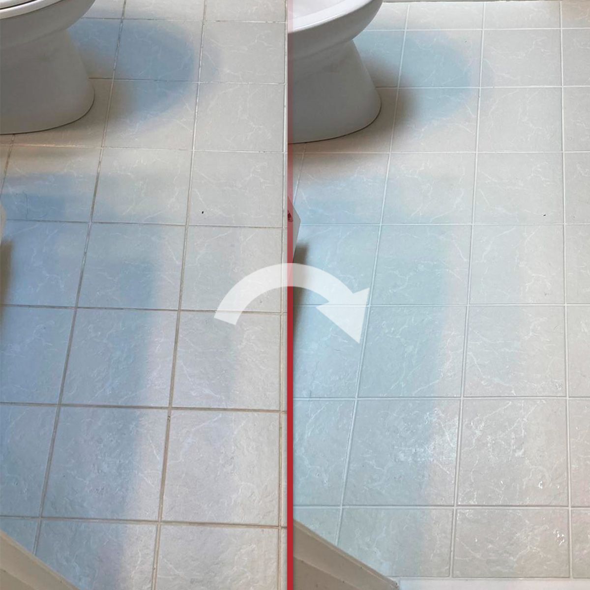 This customer in #GardenCityNY wanted to have his bathroom floor's grout and tile match perfectly so that the area looked brand new again!