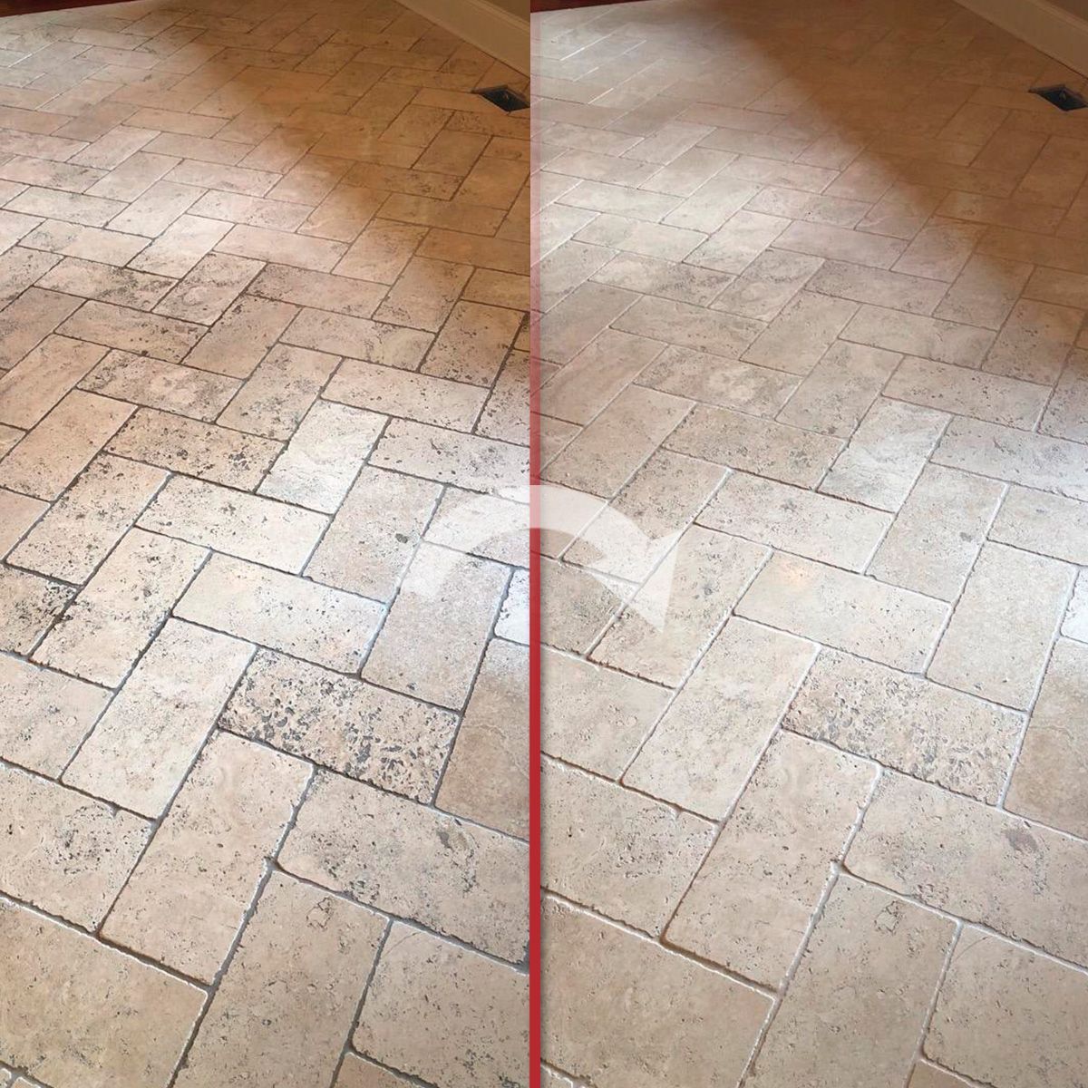 This travertine floor in #SyossetNY is loving its owners again due to our stone and #groutcleaning, polishing, and #colorsealing process! 😎