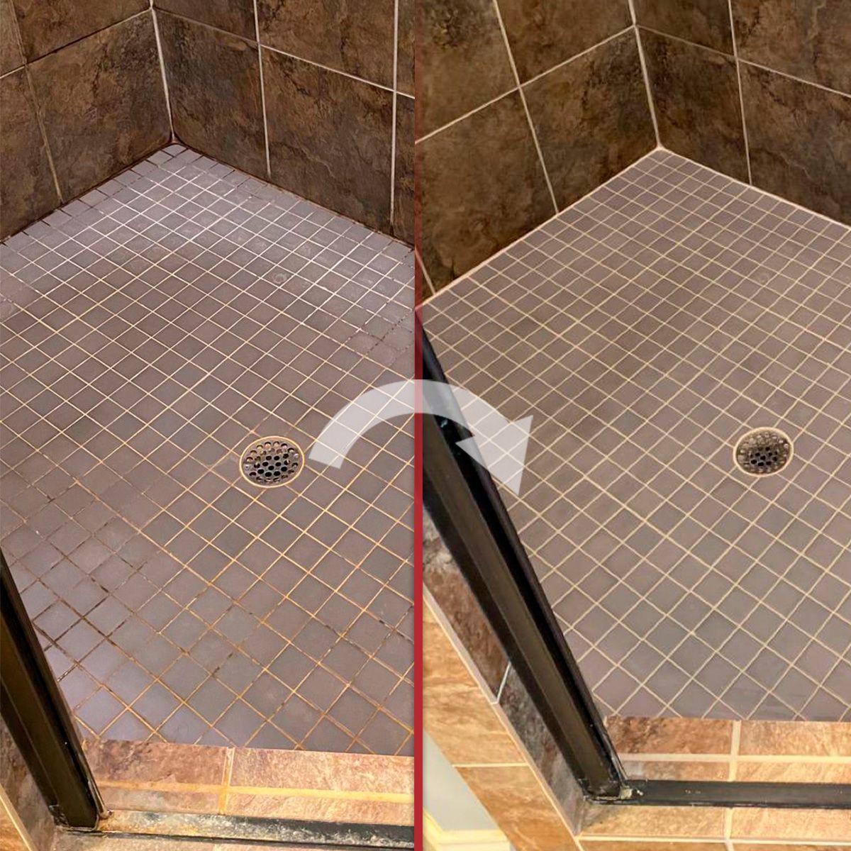 Our customer from #Lawrence couldn't believe how our tile and #groutcleaning, sealing and caulking process transformed his shower! 😱